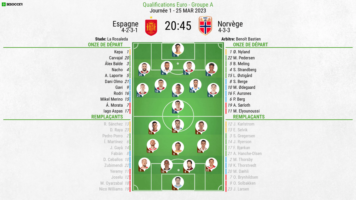 Web 1 day agoDécouvrez les compositions probables de lEspagne et de la Norvège dans le cadre des éliminatoires pour lEuro 2024. Web Ce samedi 25 mars la sélection espagnole lance sa campagne de qualifications pour lEuro 2024 avec la réception de la Norvège dans le groupe A. Qualifications Euro 2024 - Pour la grande première de Luis de la Fuente lEspagne a souffert mais sest imposée 3-0 face à la.